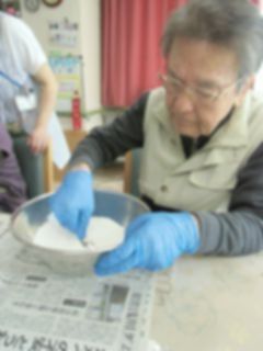 そのような折、デイケアでは春ならではの桜餅を作りました。